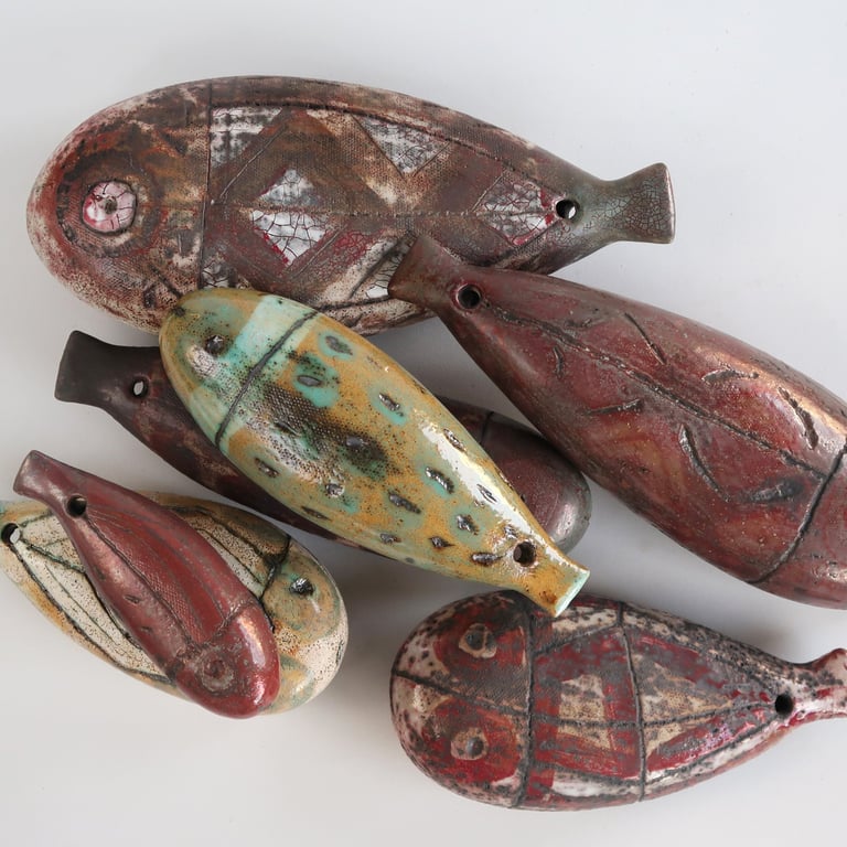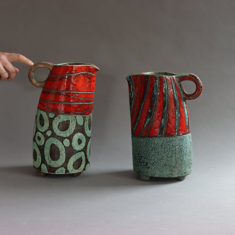 I work a lot with texture and prefer a combination of matte and gloss. I use electric kilns for firing and also experiment with reduction and raku.