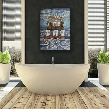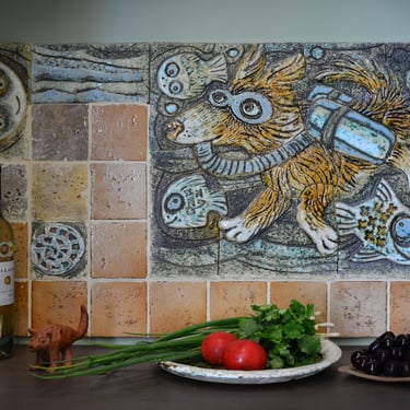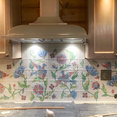 Custom painting of factory-made tiles and creation of textured tiles.